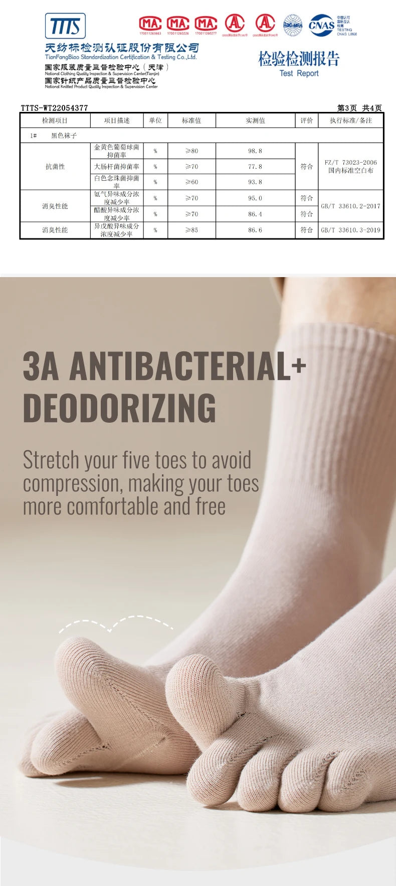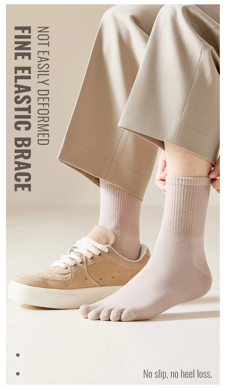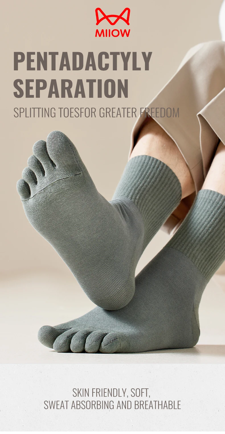 MiiOW 5Pairs Men Five Finger Long Socks Set Lycra Band Deodorant Antibacterial Sports Split Toe Stocking Causal Pure Cotton Sock