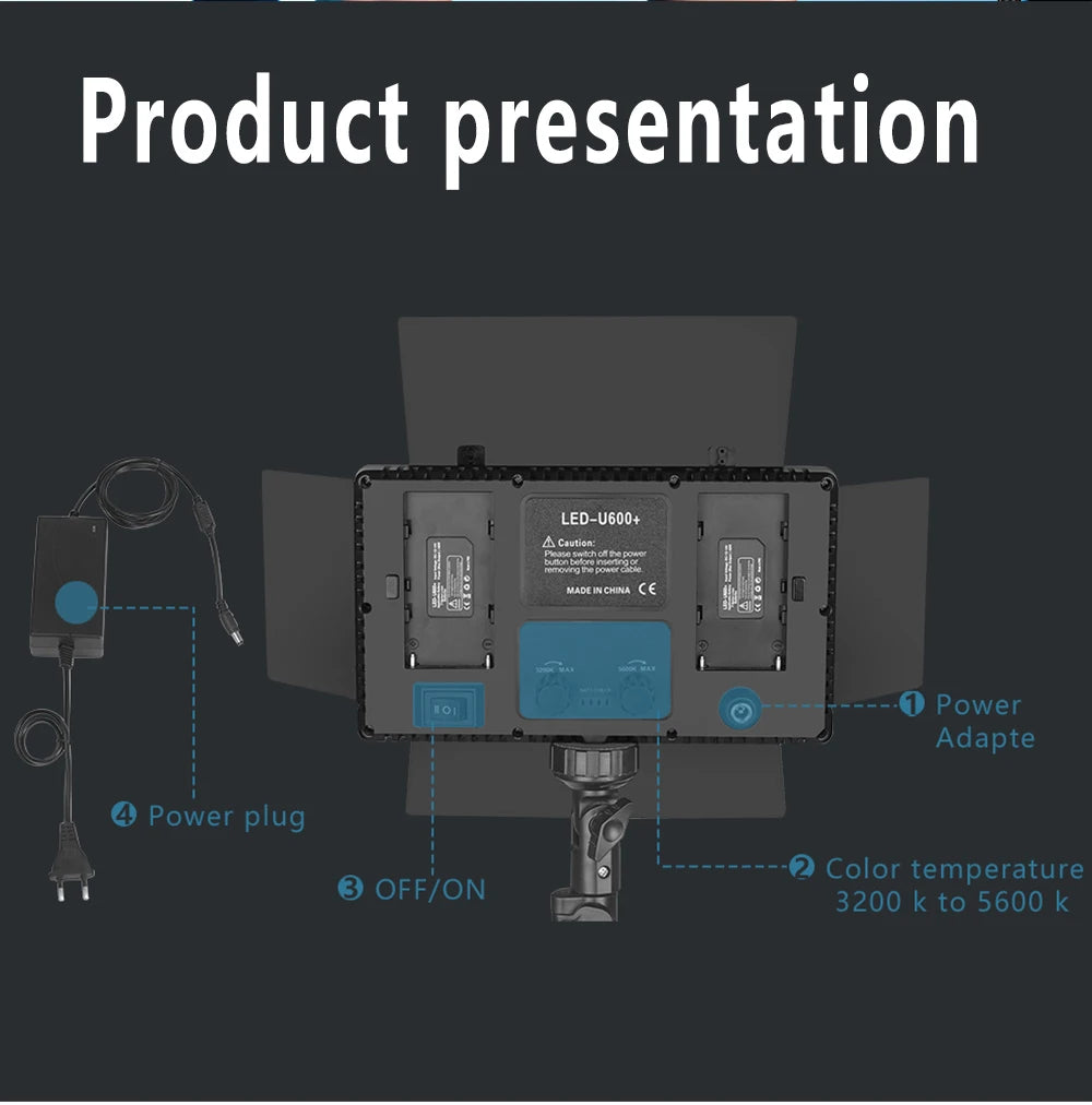 U800 LED Photo Studio Light for Tiktok Youbute Live Video Lighting 40W/50W Portable Video Recording Photography Panel Lamp Dimmable