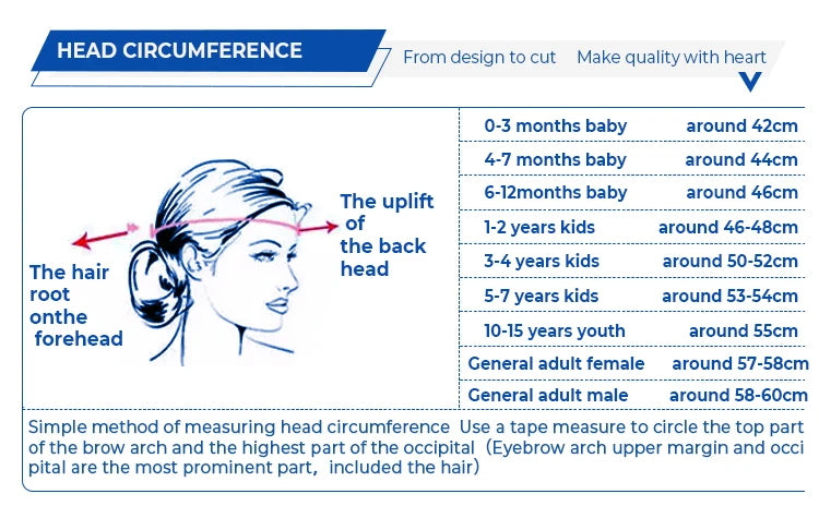 * Head Circumferences: 56-58cm/22.04-22.83in