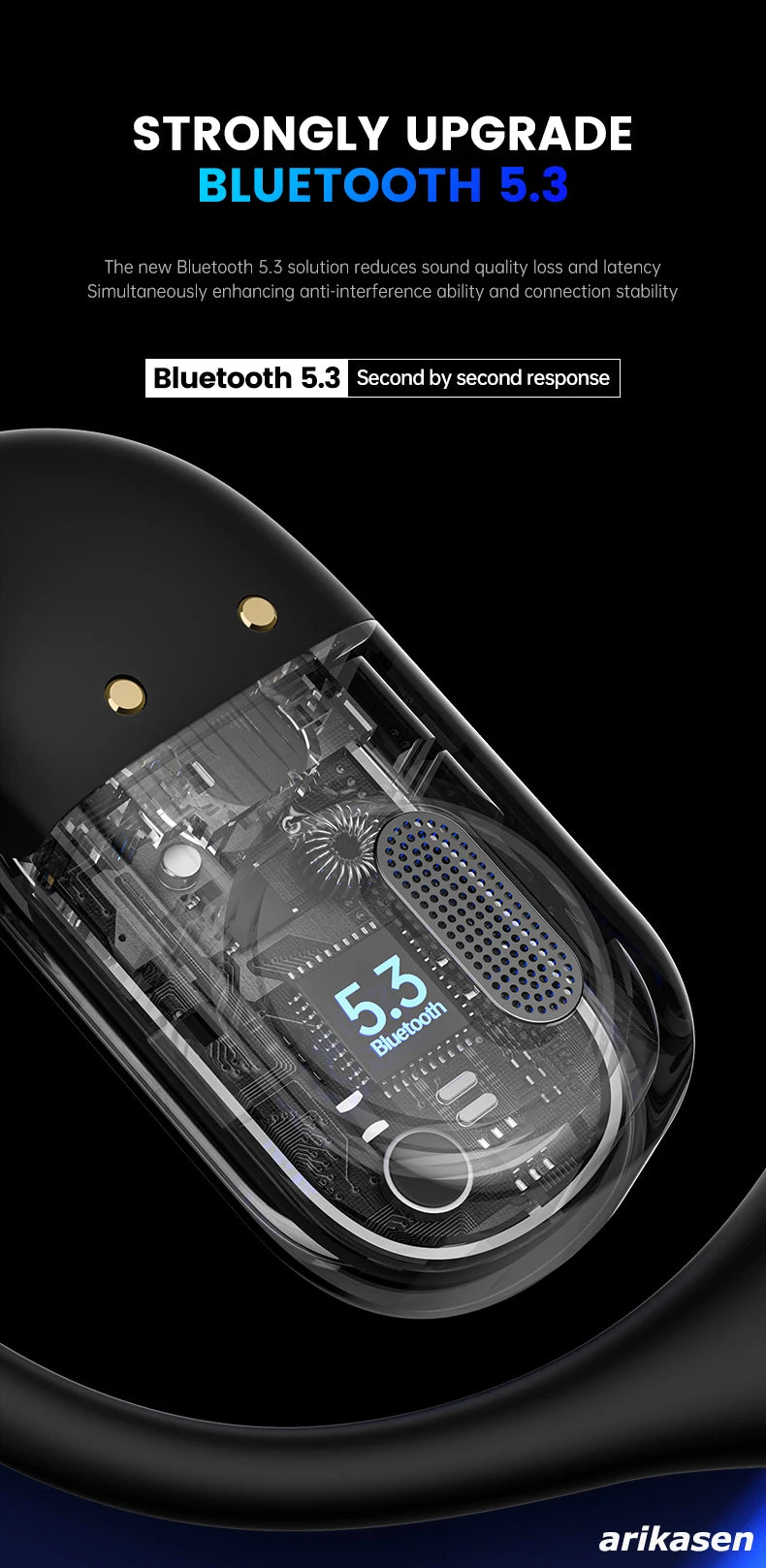 Immerse yourself in an unparalleled audio experience with our Arikasen Bluetooth headphones. They provide exceptional hi-res sound quality, enhanced by AAC encoding, and boast the latest Bluetooth 5.3 technology to ensure a seamless and high-quality wireless connection.
