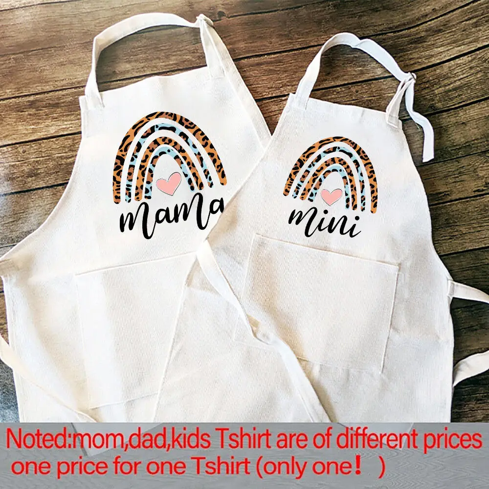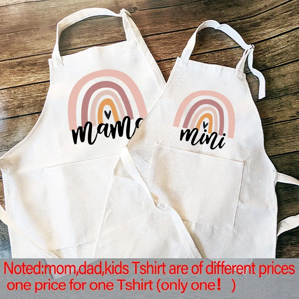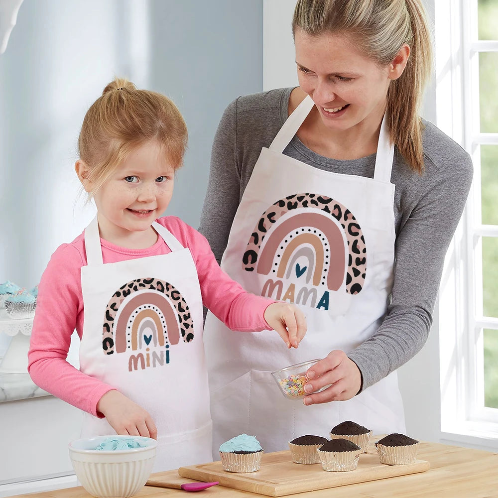 Rainbow Mama Rainbow Mini Print Apron Mom Kids Family Matching Apron Mother Girl Kitchen Apron Cooking Baking Pinafore Gift 1pcs