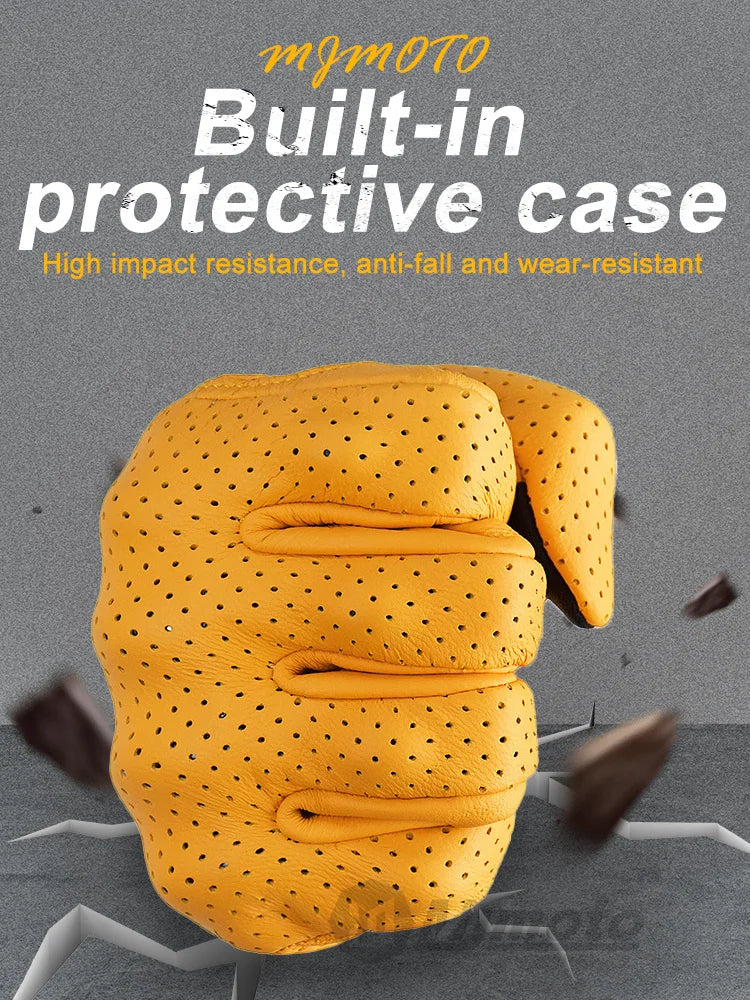 Retro Yellow Leather Motorcycle Gloves Men Women Breathable Perforated Motorbike Racing Gloves Touch Screen Motocross Moto Glove