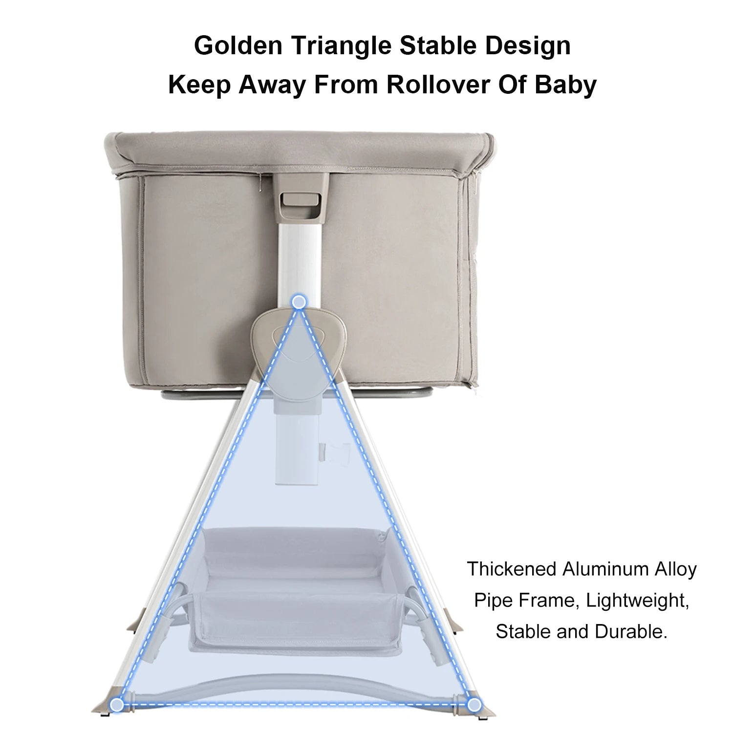 ★ SAFETY AND STABILITY: The bedside with strong triangular structure and non-slip foot pads ensure high stability and baby safety. and utilizes a double-sided mesh design to maximize breathability and air circulation, ensuring the baby sleeps safely and comfortably. Adjustable buttom rocking tube while as cradel model