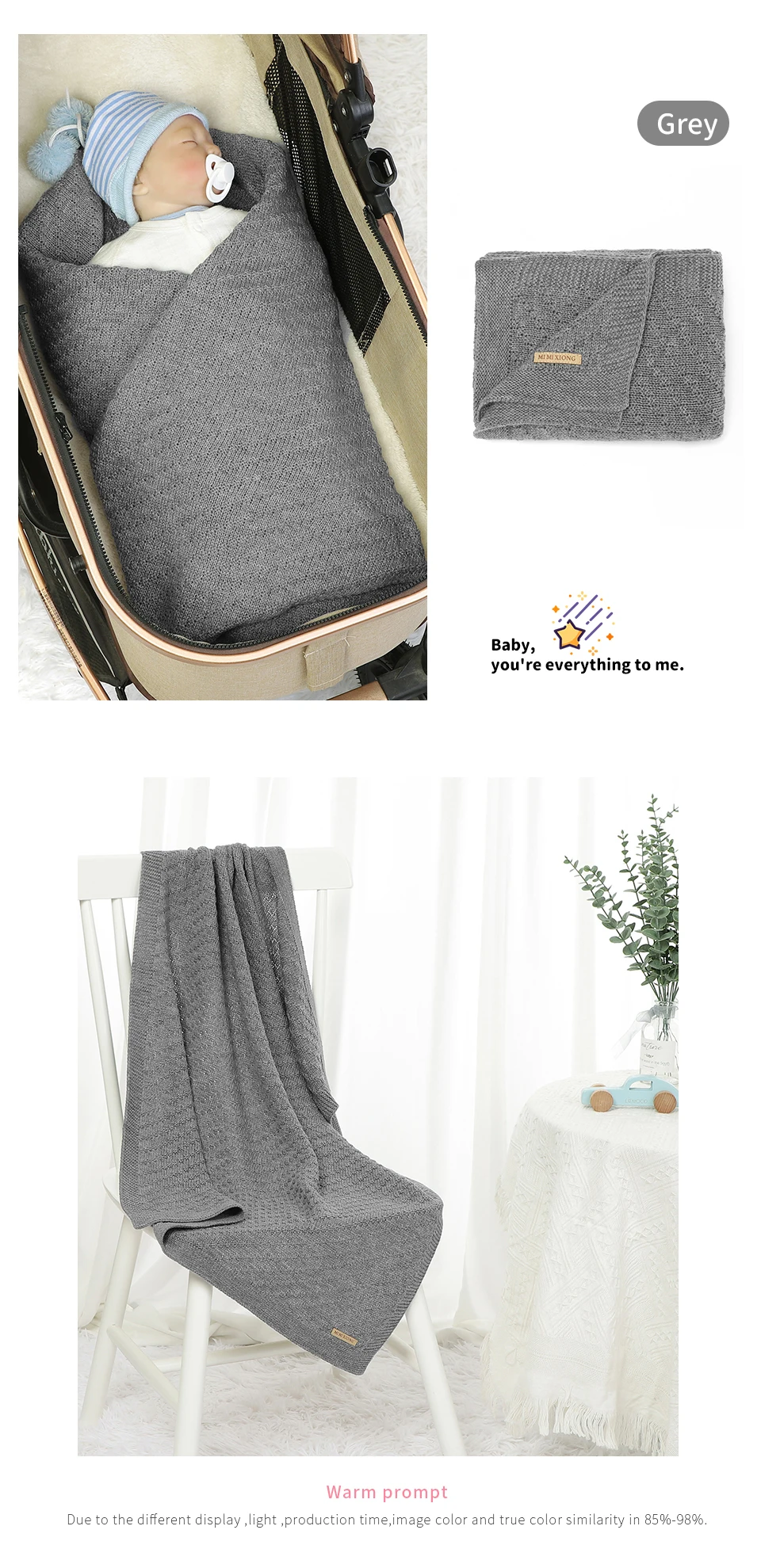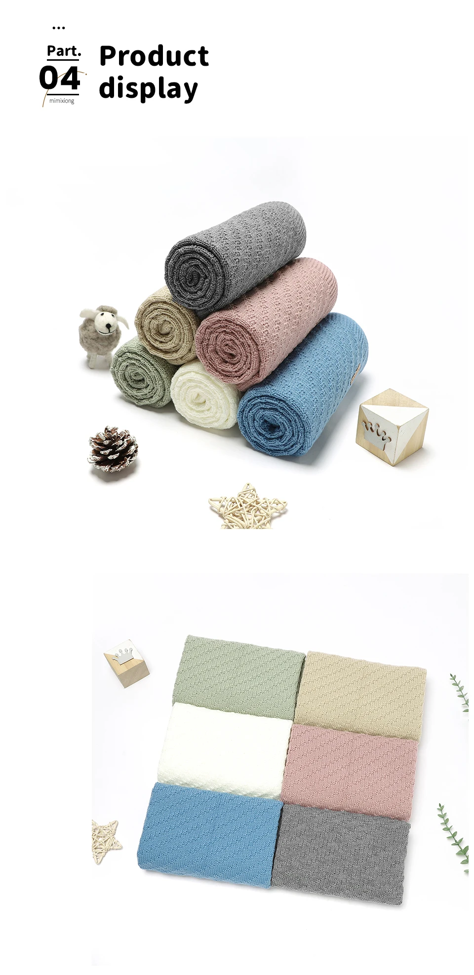 Solid Color 70 cm * 90 cm 0-24 Months Newborn Baby Swaddle Wraps Soft Infant Security Blankets Knitted Acrylic Baby Blankets
