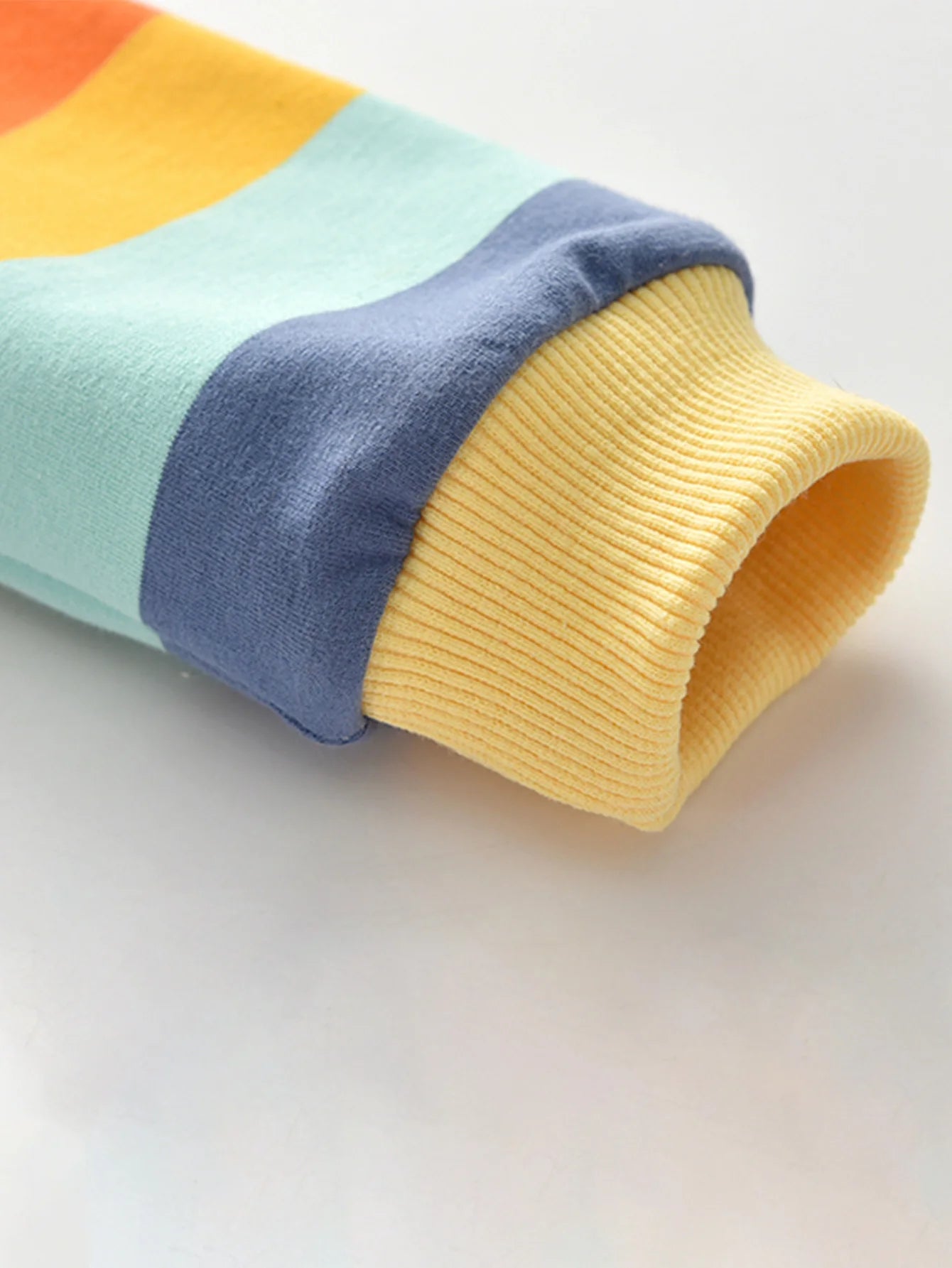 Spring and Autumn Girls' Personalized Fashion Cute Zipper Pocket Rainbow Strip Hooded Jacket
