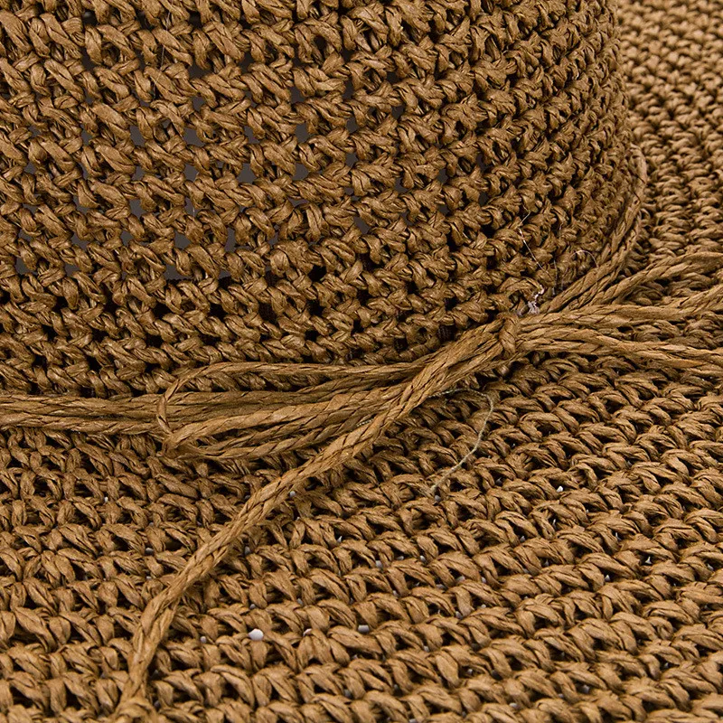 String Bow Floppy Breath Foldable Straw Beach Bucket Hat Wide Floppy Brim UV Sun Protection Caps For Summer Women