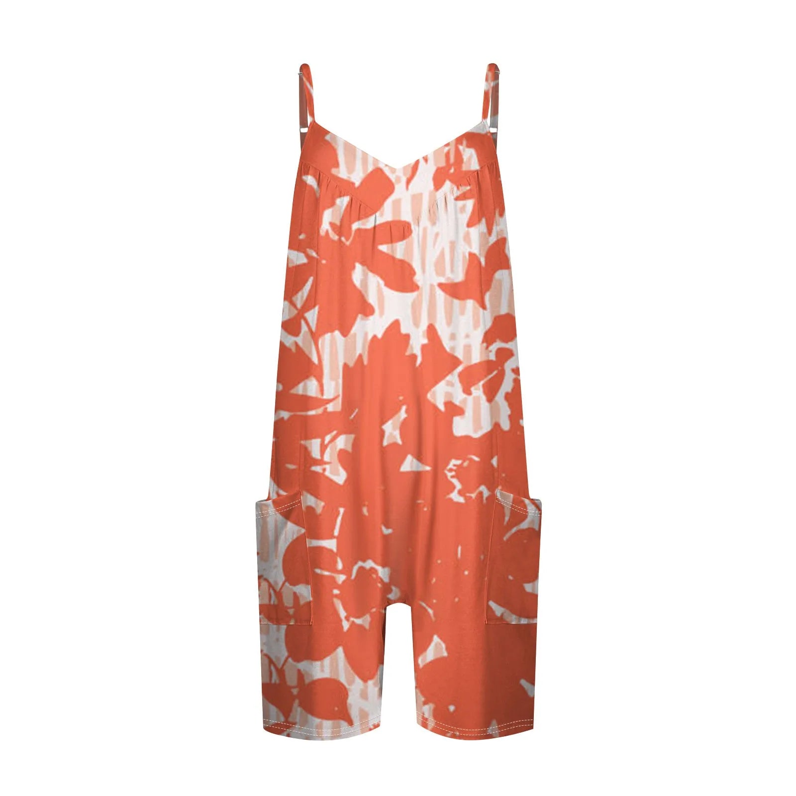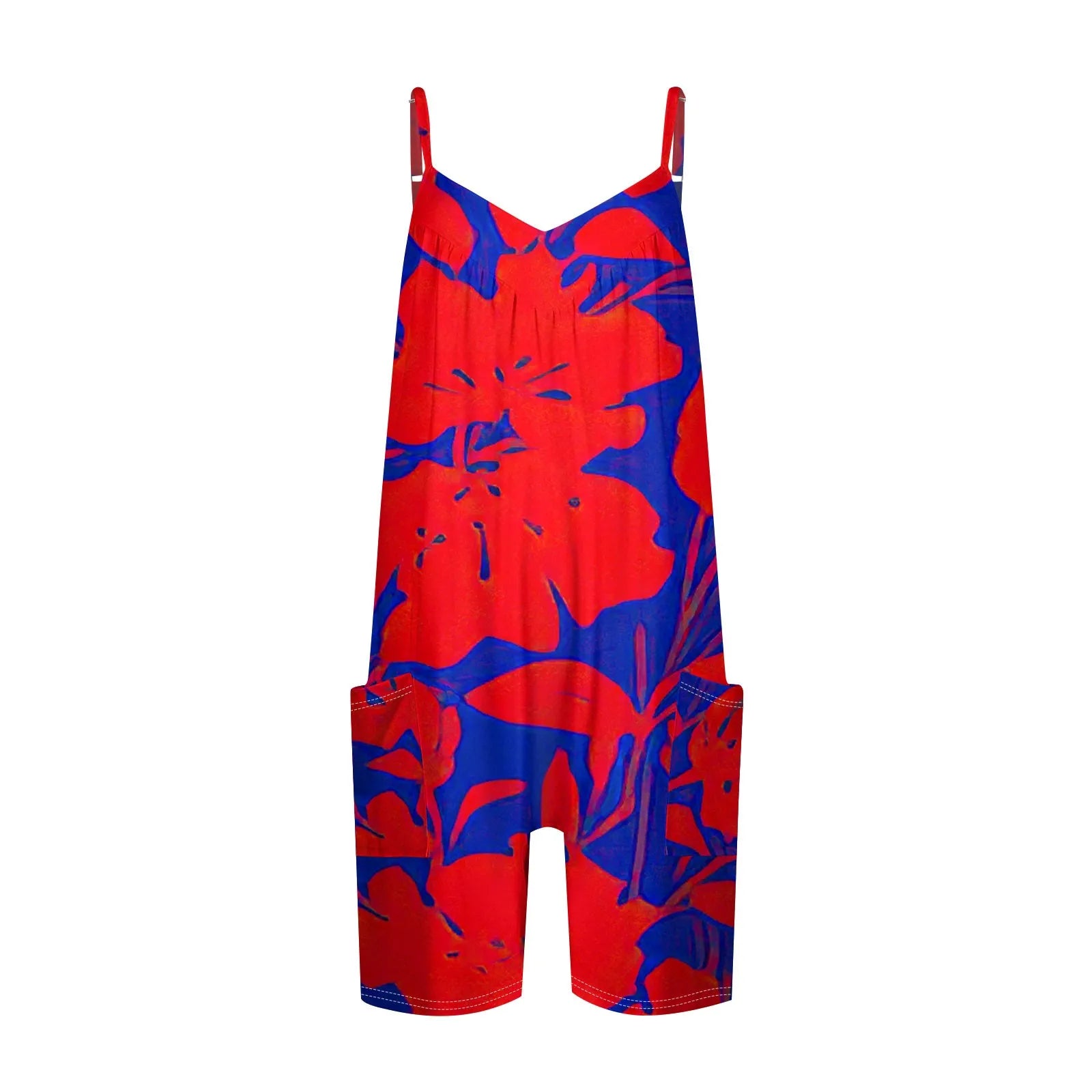 Women's Summer Daily Jumpsuit Shorts, Printed Fashionable Casual Sleeveless Jumpsuit Shorts With Pockets