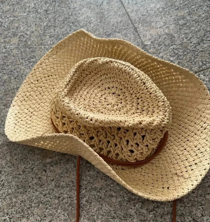 Vintage Western Cowboy Sun Hat Men Women Straw Hat Outdoor Travel Ethnic Style Gift UV Protection Cap Chapeau Beach Hat