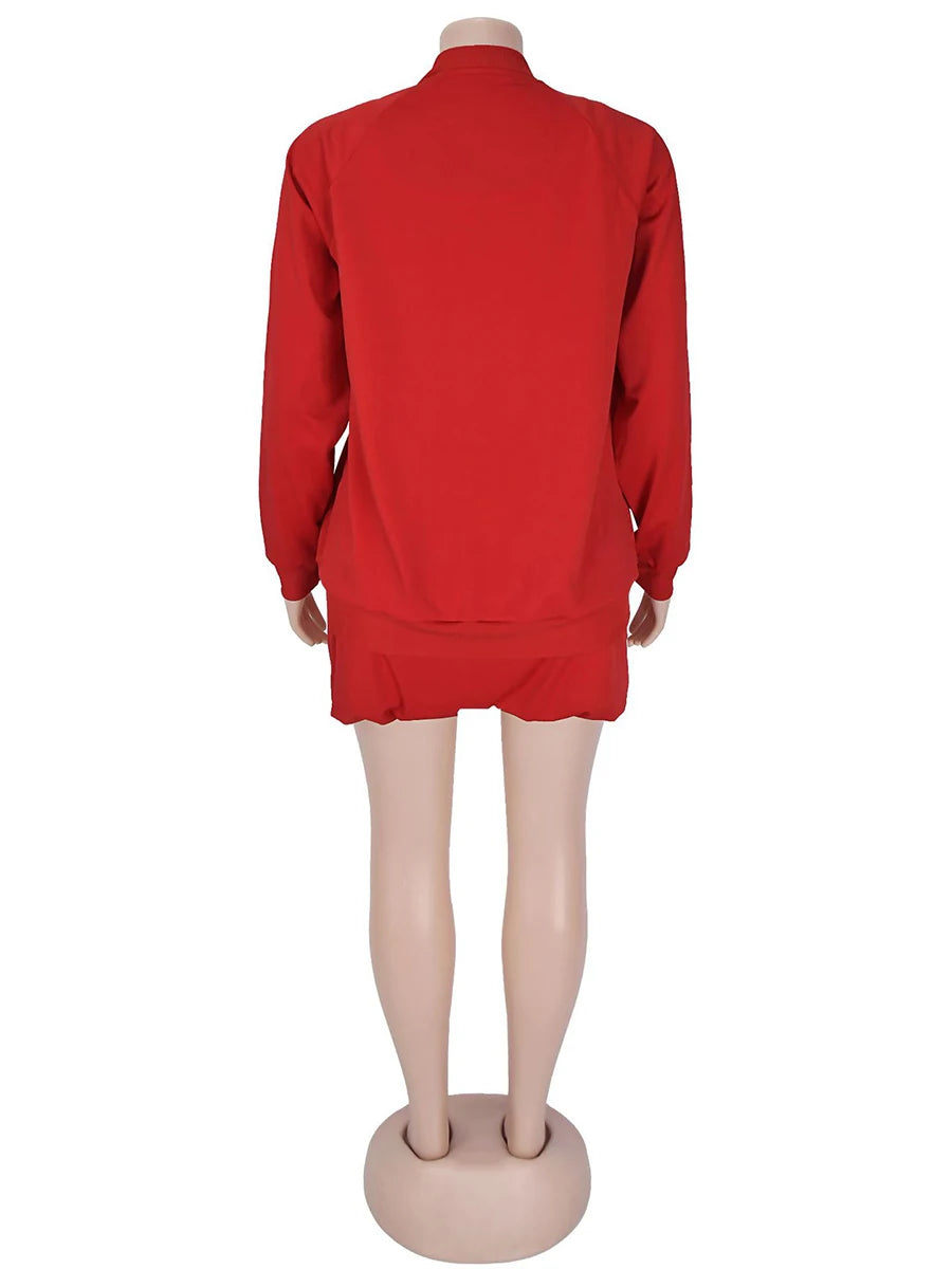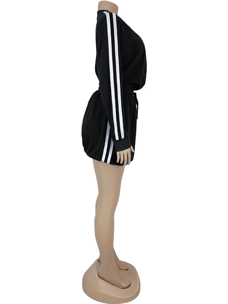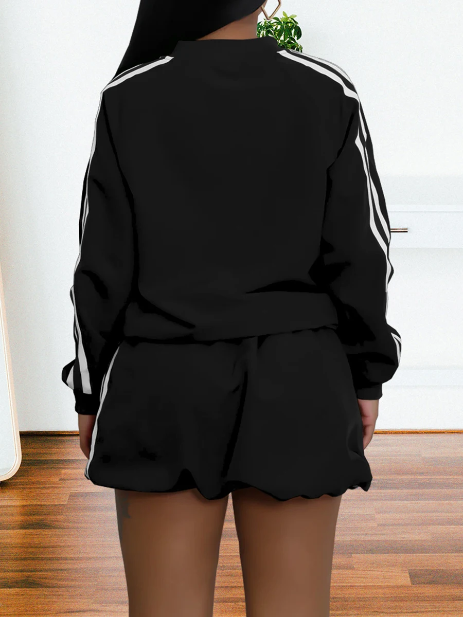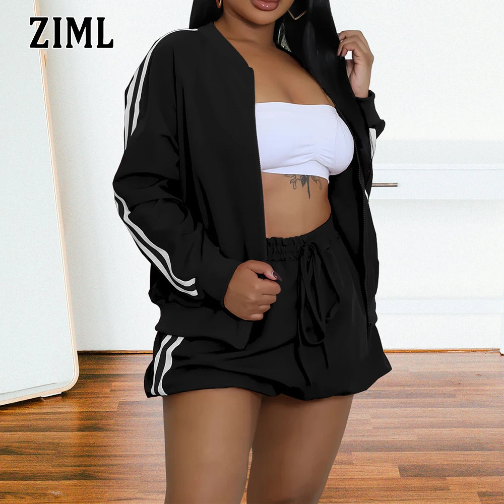 ZIML Minimalist Two Piece Sets For Women Stand Collar Long Sleeve Spliced Zipper Tops High Waist Shorts Chic Set Female Fashion